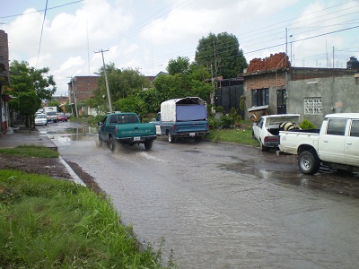En la ciudad de Moroleón los puntos más conflictivos por encharcamientos se presentaron en el bulevar Ponciano Vega a la altura del mercado nuevo, en la colonia el Bordo y en la calle Juárez.