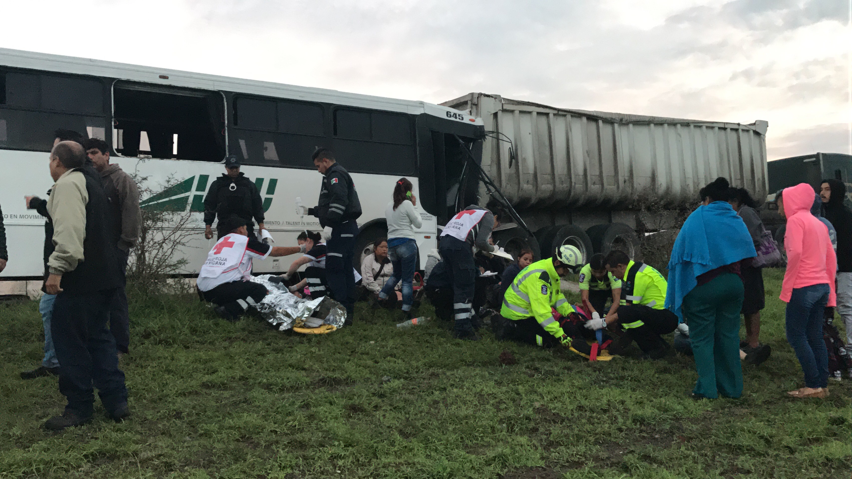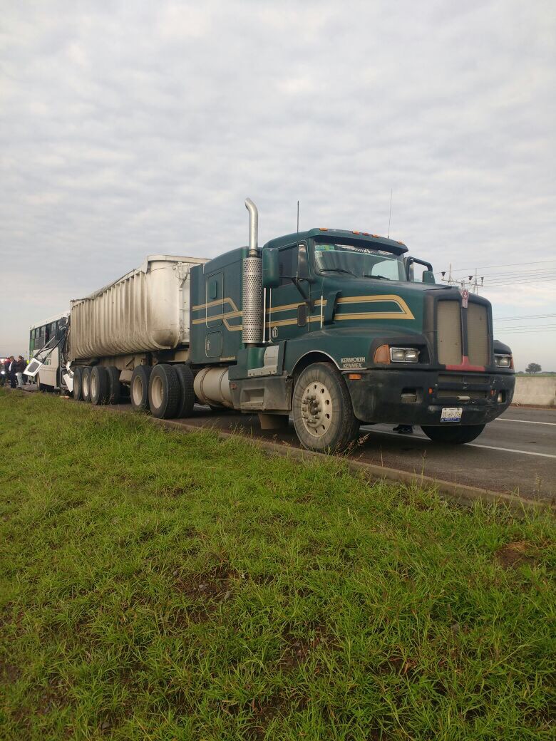 Un autobús en el que viajaban trabajadores de Mabe chocó contra un tráiler por alcance.