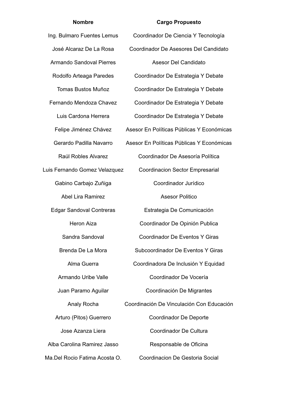 Agregó el objetivo primordial de estos colaboradores será generar la vinculación directa con la sociedad, dar continuidad a los acuerdos que se tomen y con ello, fortalecer el proyecto de la candidatura, para lograr la alternancia política de la entidad.