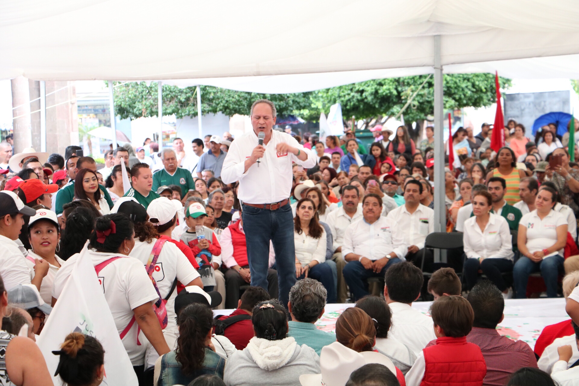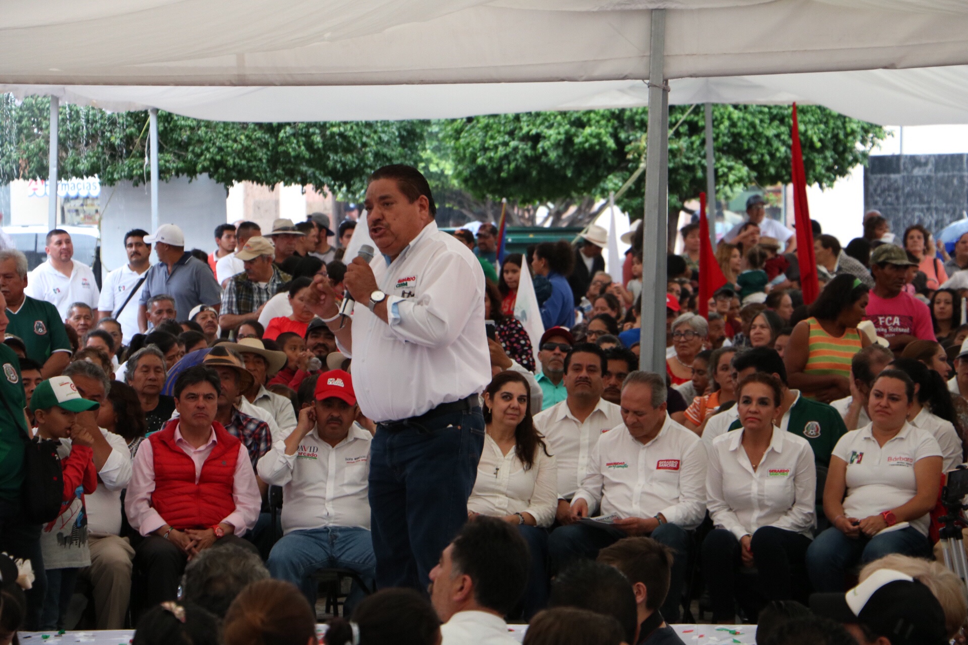 Todo inicio con una marcha encabezada por el candidato a Gobernador Gerardo Sánchez, el candidato a Presidente Municipal Gerardo Cerda, David Mercado candidato a diputado local y Rafael García del Horno, candidato a diputado federal, además del delegado del CEN del PRI Andrés Fernández Delgado y la dirigente estatal del partido Celeste Fragoso.