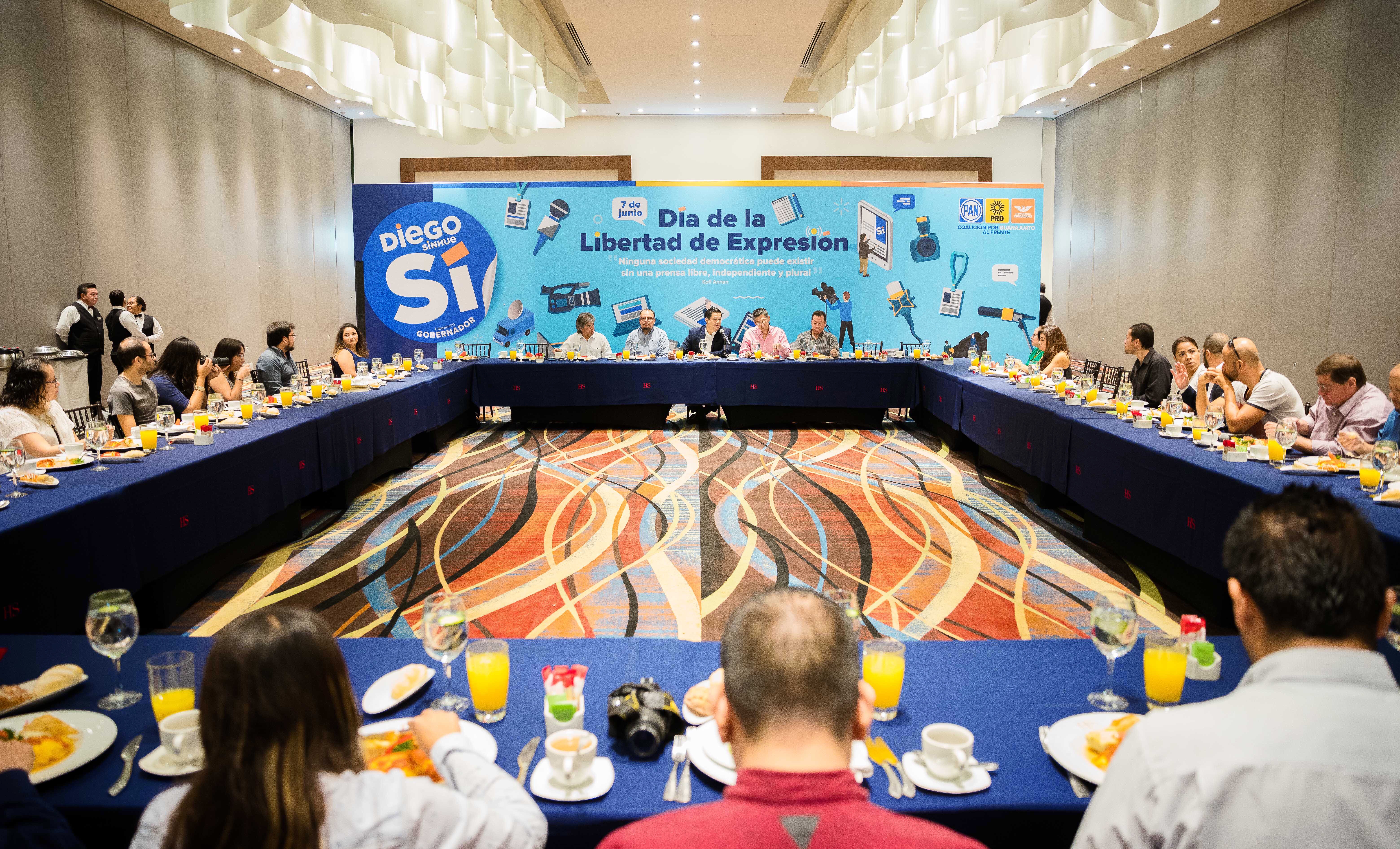 El candidato se reunió esta mañana con periodistas y representantes de medios de comunicación, para agradecerles en el “Día de la Libertad de Expresión” su compromiso por informar de manera veraz y oportuna a los ciudadanos