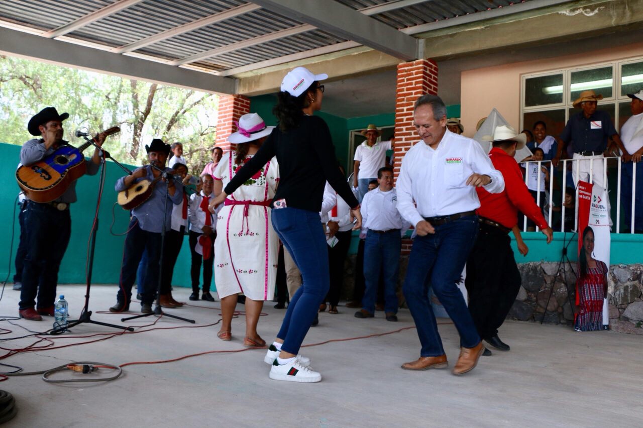 La gira inició en Santa Catarina en San José del Chilar, donde el candidato zapateó al ritmo de los sones arribeños de Los Primos de la Sierra y pudo escuchar unos versos que le dedicó Vicky, vecina de la región.