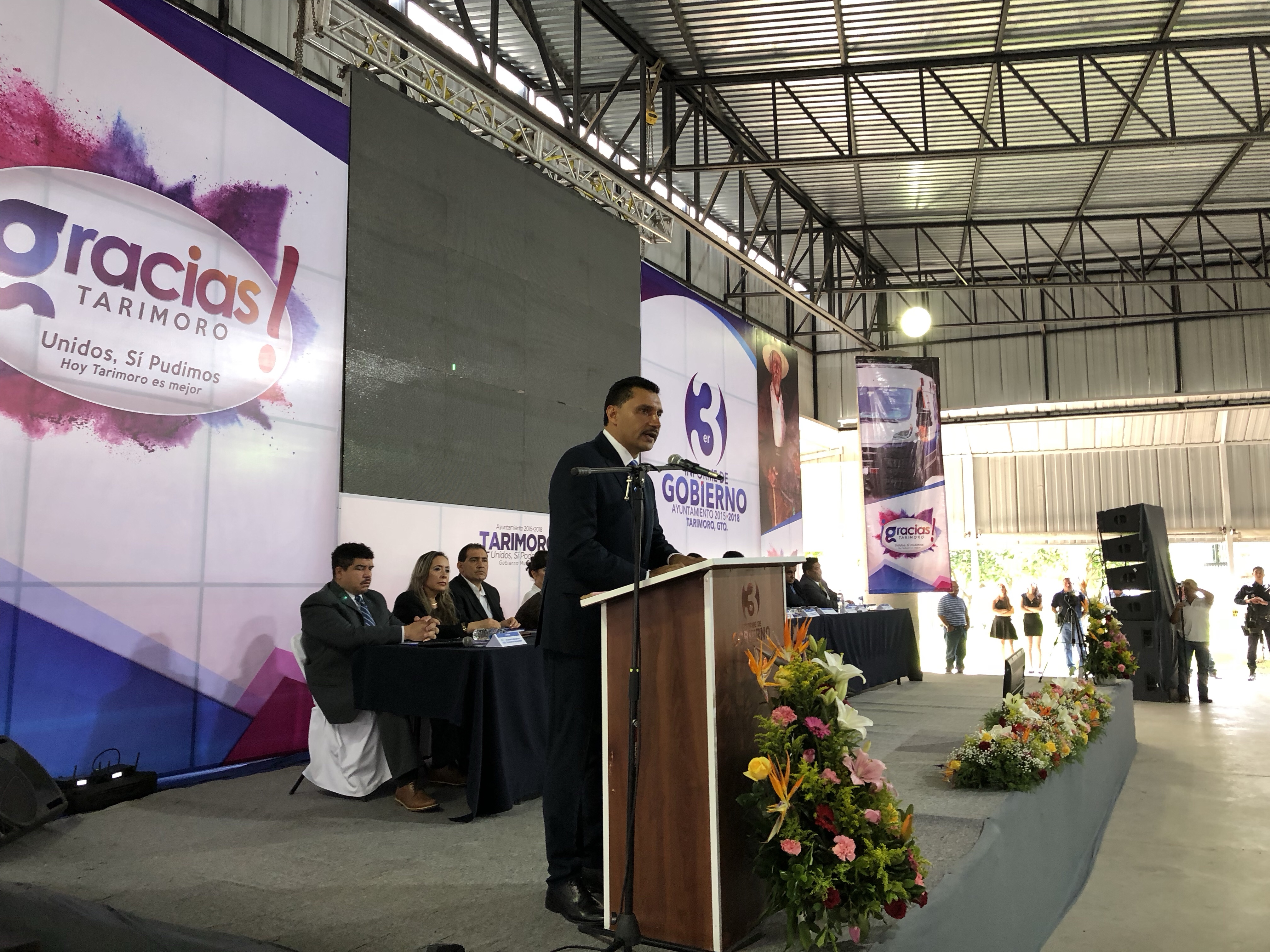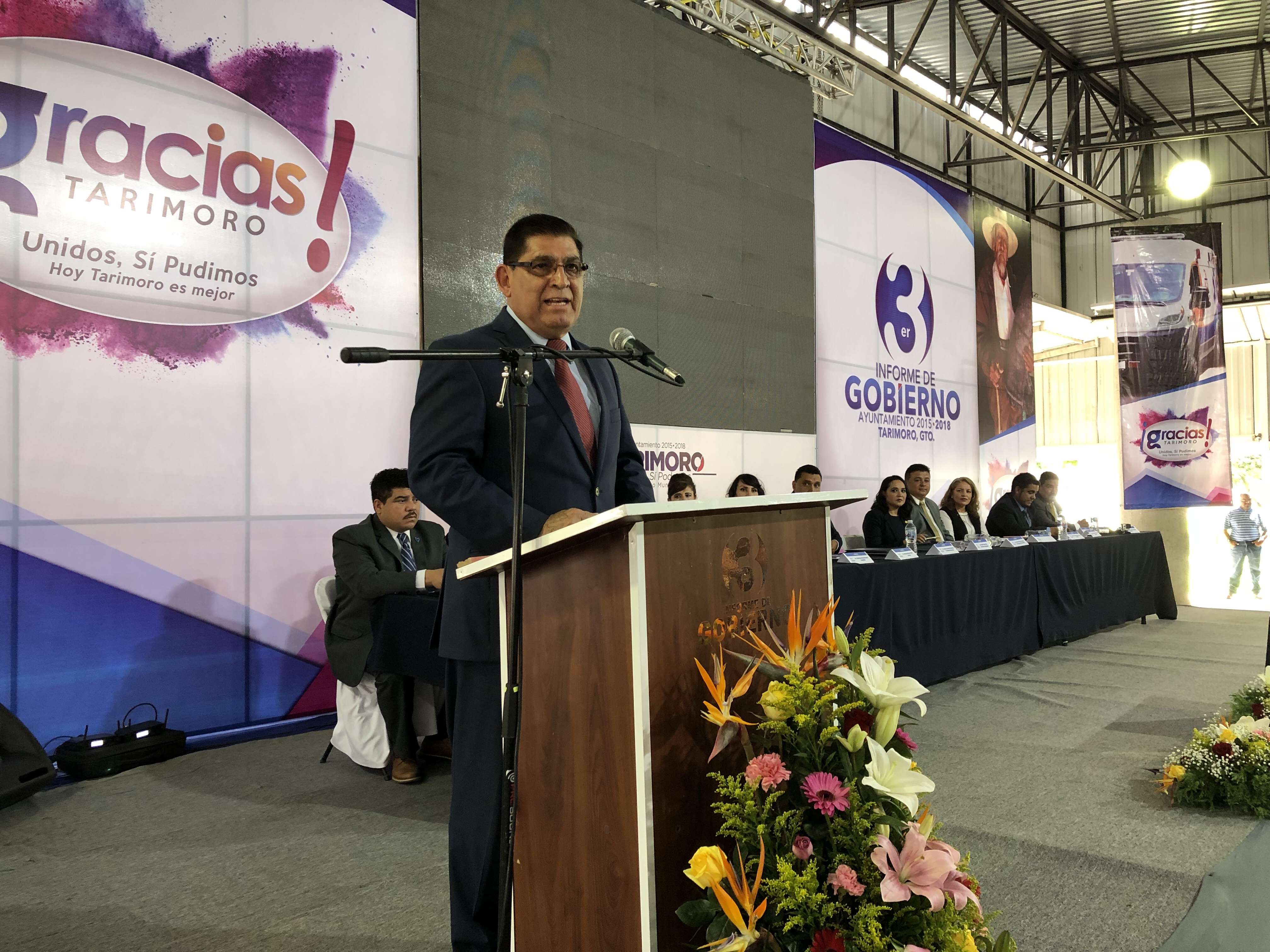 Enseguida el alcalde tomó la palabra y hablo sobre los tres años de gobierno Municipal, “cumplimos con el compromiso adquirido de seguir trabajando por generar el cambio de vida a favor de la gente tarimorense, obras y acciones palpables en los ámbitos de: seguridad, rescate, educación, cultura, deporte, obra pública, economía, campo, finanzas y desarrollo social entre otras, fueron las que se destacaron en este último informe de la administración. Sin duda, el trabajo ha sido arduo y notable, pero esto aún no termina, sigamos generando un mejor municipio, con entusiasmo, juntos lo lograremos”, comento.