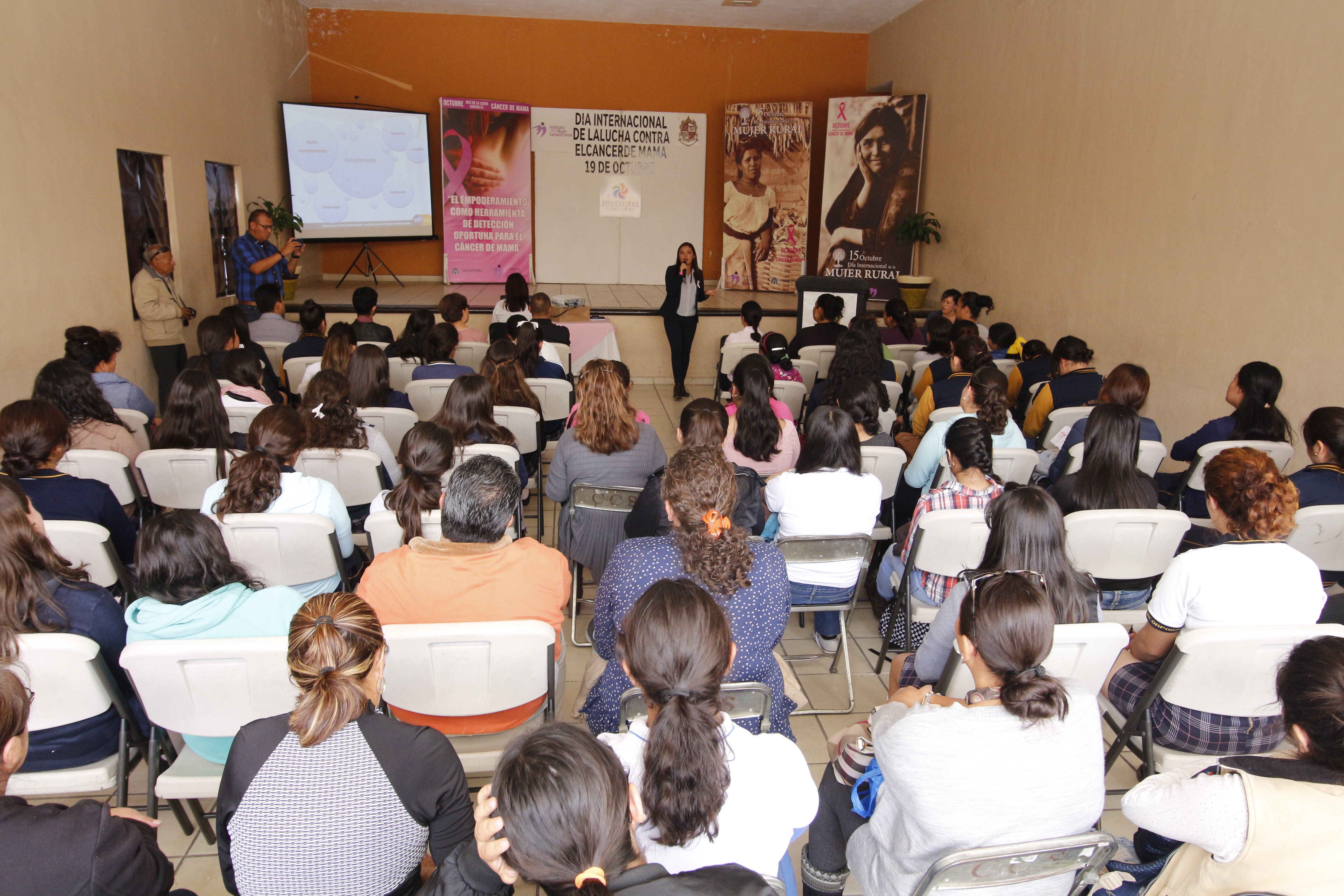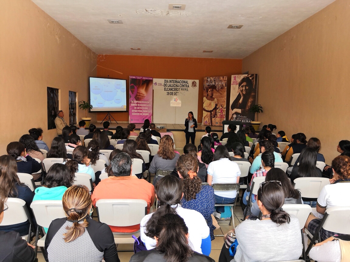 La conferencia fue brindada por la psicóloga Esbeidy Idali Martínez Morales, quien les mencionó a los presentes que este tipo de enfermedad ya es una de las más letales en los últimos años, así mismo les explicó cuál es la forma correcta de realizarse la auto exploración y aspectos relacionados con el cómo lograr el empoderamiento de la mujer en el ámbito psicológico.