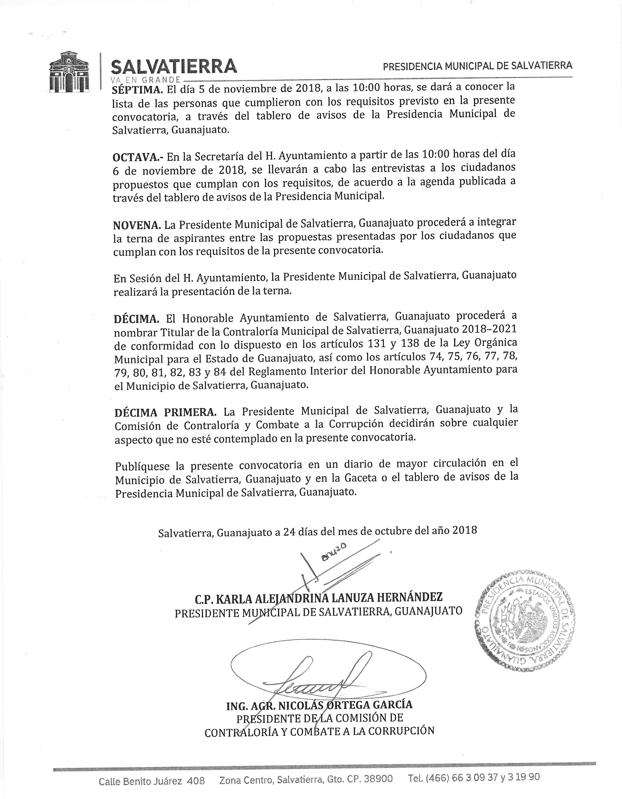 La noche del 24 de octubre, en sesión de ayuntamiento, fue aprobada por unanimidad de los ediles, la convocatoria para la elección del nuevo contralor municipal.