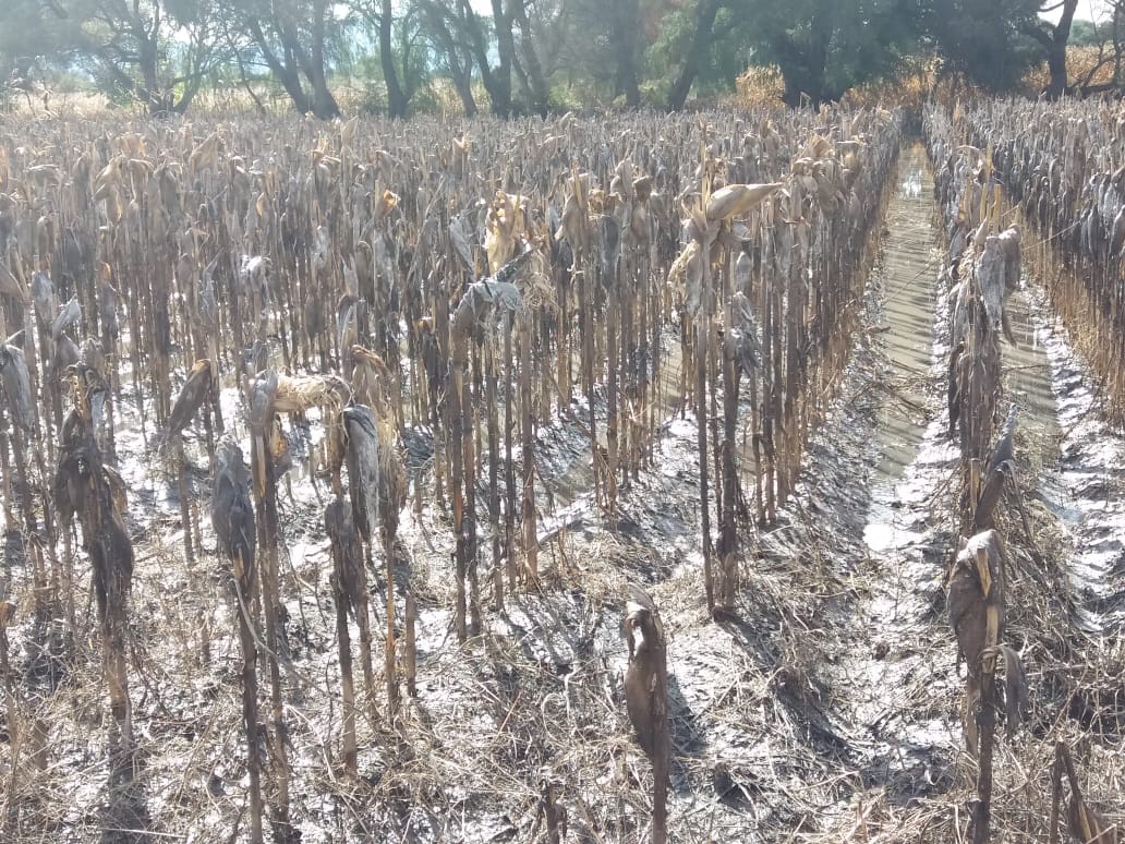 Inés Hernández, mencionó que tras las fuertes lluvias que se han presentado en las últimas fechas, realizaron una visita por la zona en donde detectaron afectaciones del cien por ciento de las cosechas en 70 hectáreas y otras más en menor grado de daños. Siendo afectados los cultivos de maíz, sorgo, alfalfa y frijol.