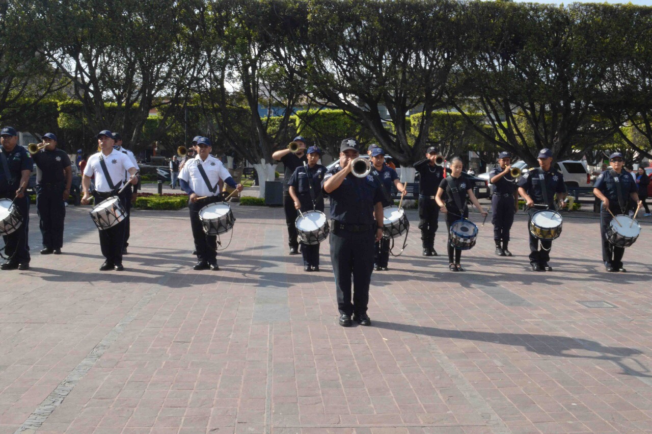 Después de rendir honores a la bandera a cargo de la Banda de Guerra de la Dirección de Seguridad Pública, Tránsito, Transporte y Protección Civil; se proclamó el juramento a la bandera por el alumno Gael Romero Medina del 5to. Grado de la Escuela Primaria “Teresa Martín”.