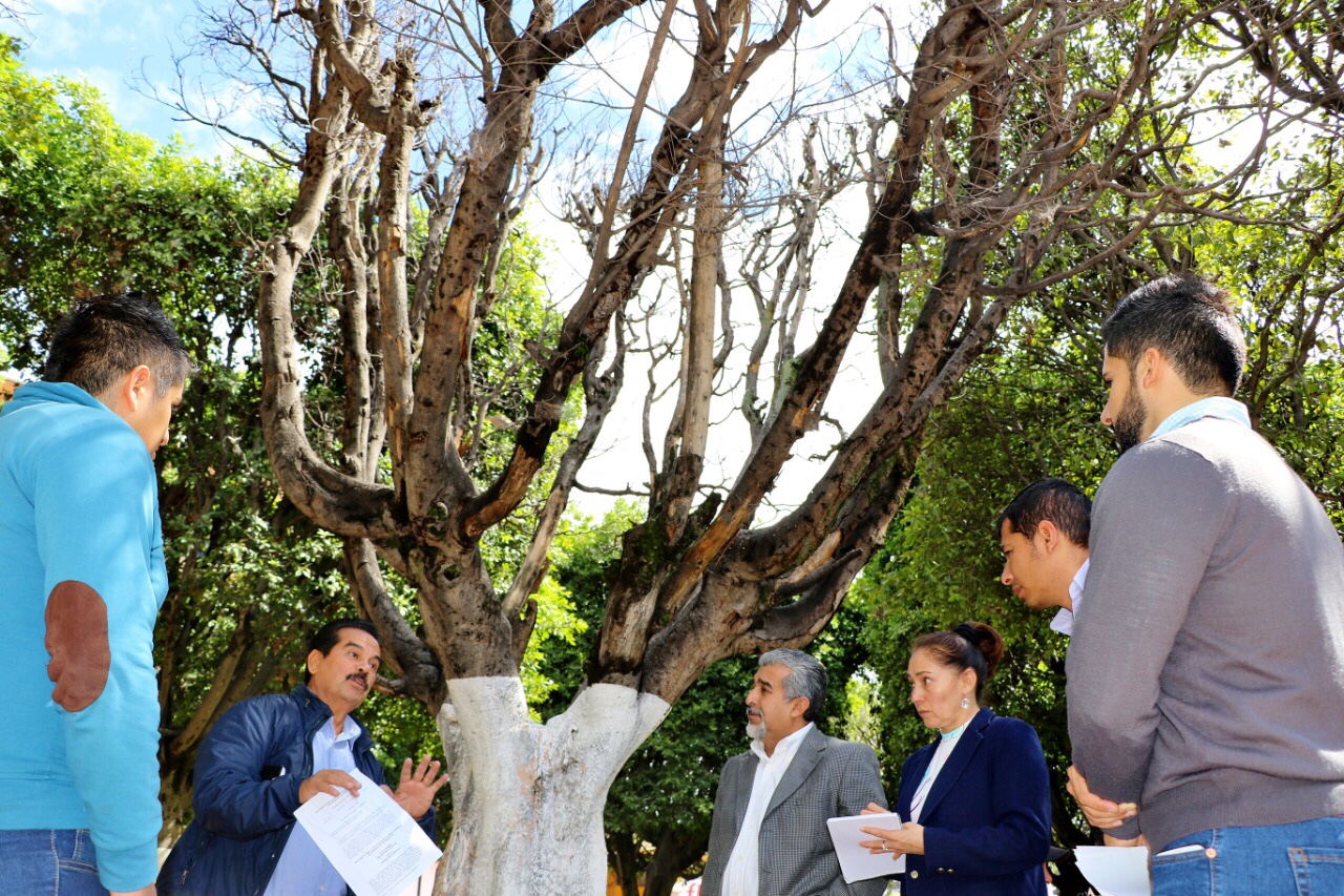 Este lunes, los titulares de las direcciones de Ecología, Graciela Arriaga Mondragón, y de Salud, Maximiliano Vera Vega, en conjunto con un representante de la Asociación Mexicana de Arboricultura, A.C. realizaron una visita de inspección para diagnosticar los 64 laureles de la India ubicados en el Jardín Principal.