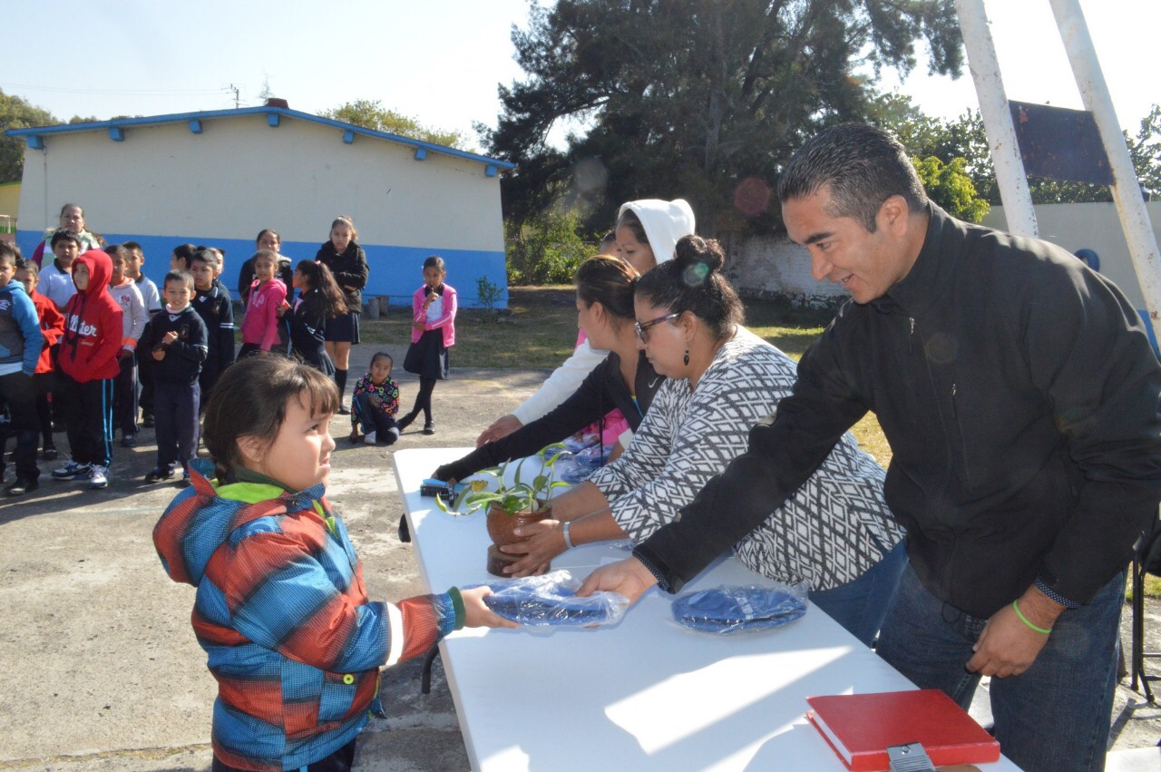 Niños de la Escuela Primaria Rural 18 de Marzo, de la comunidad de Obrajuelo, intercambiaron juguetes bélicos por juguetes didácticos.