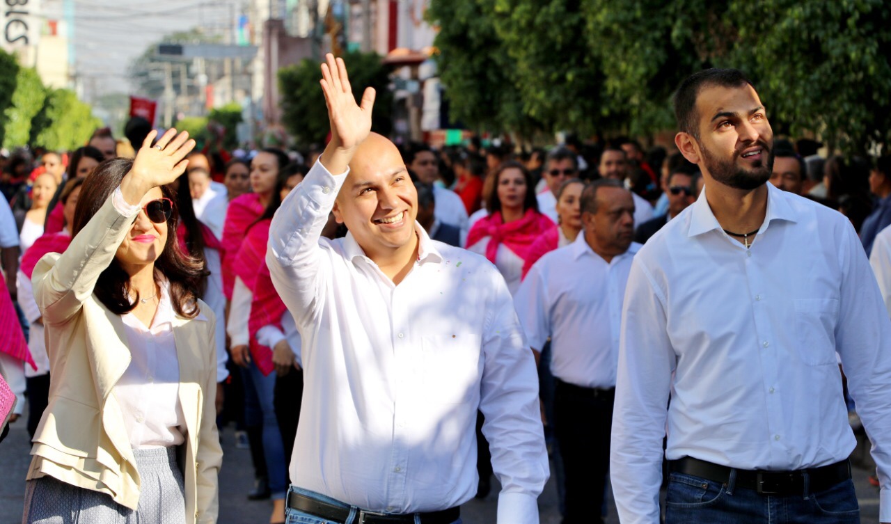 En punto de las 9:00 de la mañana, los contingentesencabezados por el alcalde Ariel Corona Rodríguez, partieron de las calles Juárez y Secundino Bellas rumbo al Jardín Principal.
