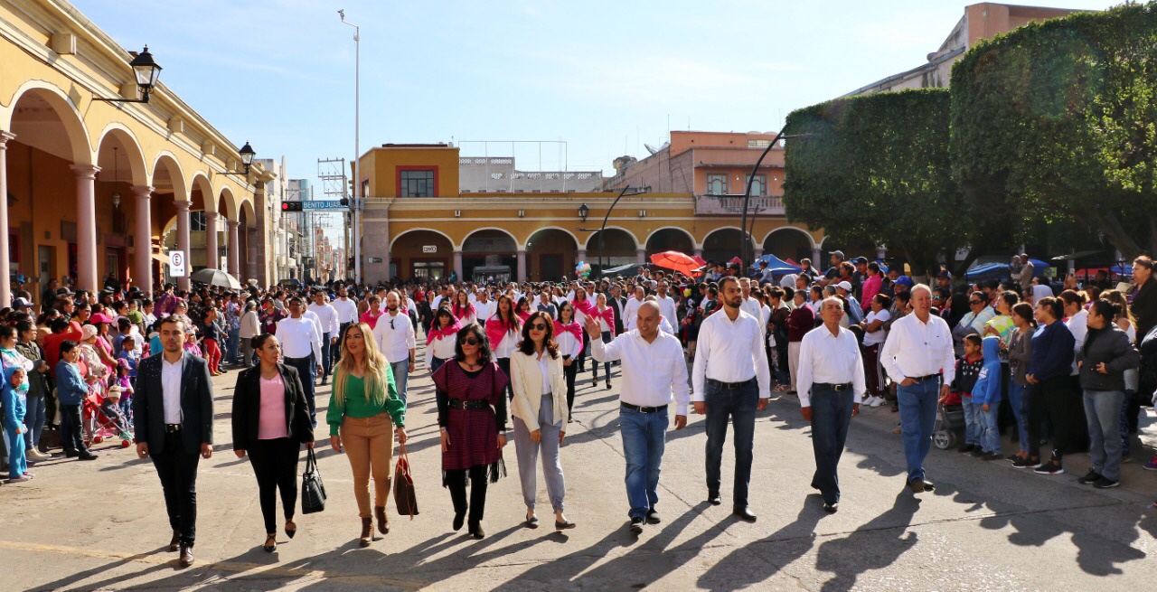 Encabezado por el presidente municipal Ariel Corona Rodríguez e integrantes del Ayuntamiento y del Gabinete, se llevó a cabo el desfile conmemorativo al 108 Aniversario de la Revolución Mexicana, con la participación de más de 2 mil personas, cerca de 25 instituciones educativas y otras entidades sociales.