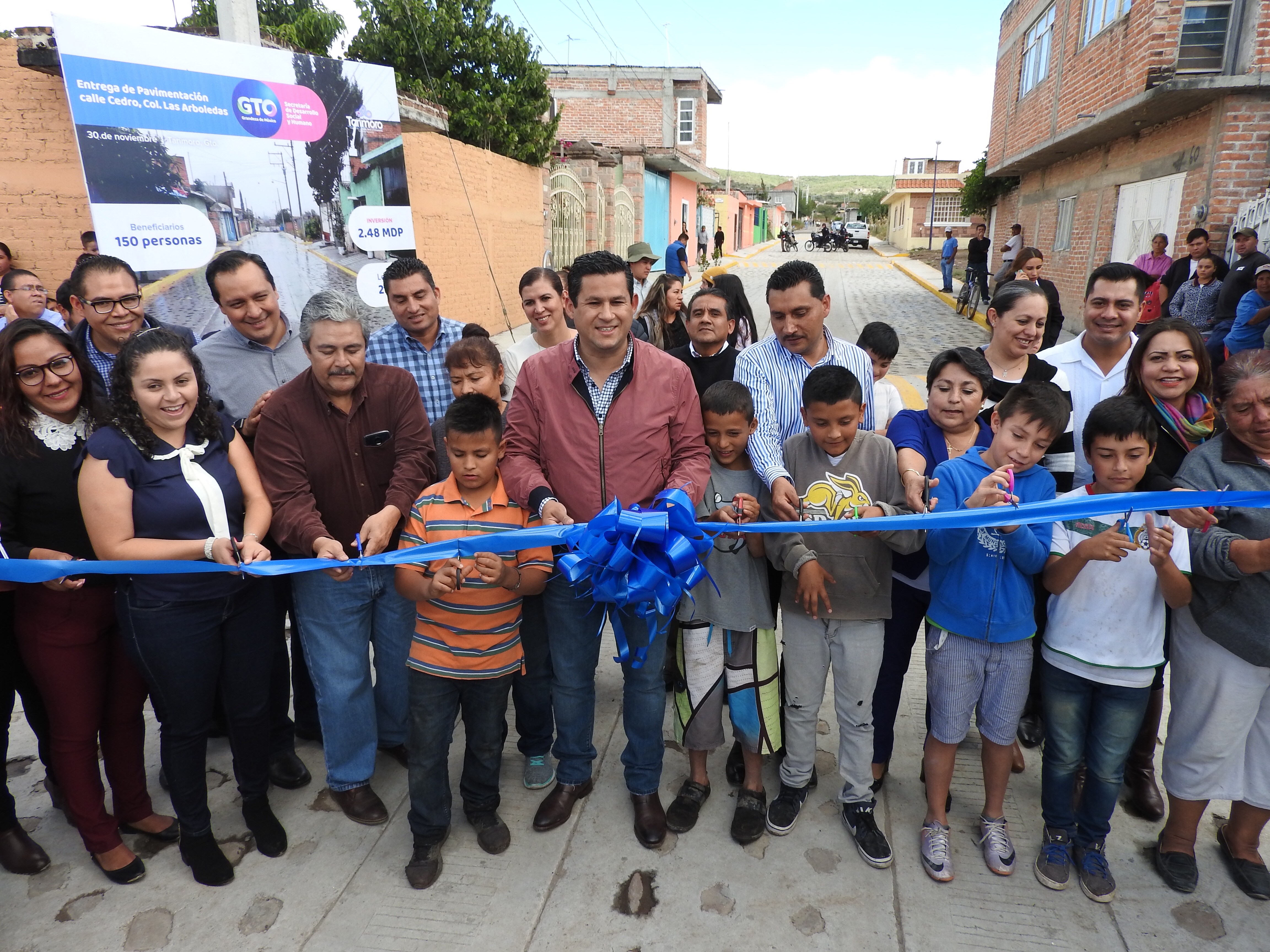Posteriormente se visitó la calle Cedro, en cabecera municipal, donde se dio el corten de listón de la pavimentación también realizada a base de piedra ahogada y roderas de concreto, esta vialidad tiene una construcción de 258 metros lineales, lo cual beneficiará a 128 personas con una inversión de 2 millones 483 mil pesos.