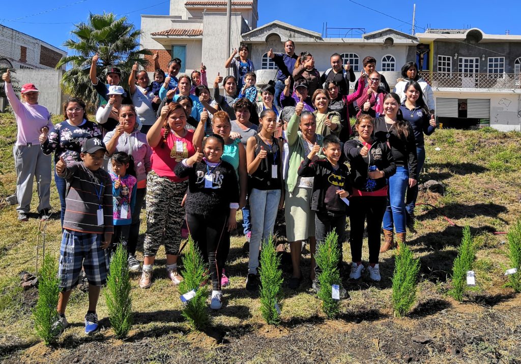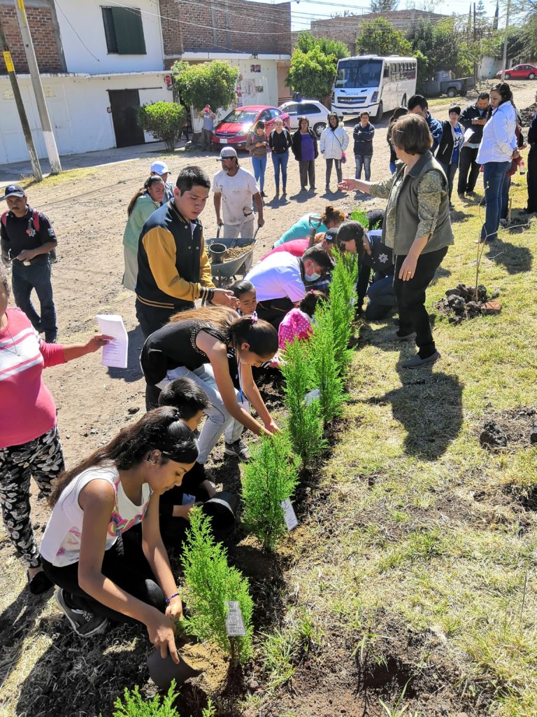 Así mismo los niños, mujeres voluntarias de dicha colonia ,estudiantes de la escuela Leopoldo Salgado y las autoridades municipales comenzaron con la plantación de los árboles tipos pinos en el camino de acceso de dicha colonia de igual forma los pequeñines recibieron un acta de adopción en donde se comprometieron a realizar acciones de cuidado y mantenimiento de los pinos.