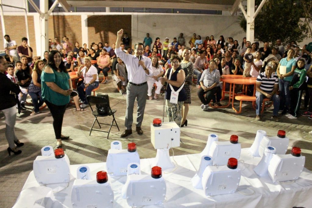 El diputado local por el Distrito XXI, Miguel Ángel Salim, llevó a cabo la entrega de diez alarmas vecinales en la colonia Delta 2000, que ayudarán a combatir la inseguridad de este lugar por medio de un sistema que es activado por los vecinos.