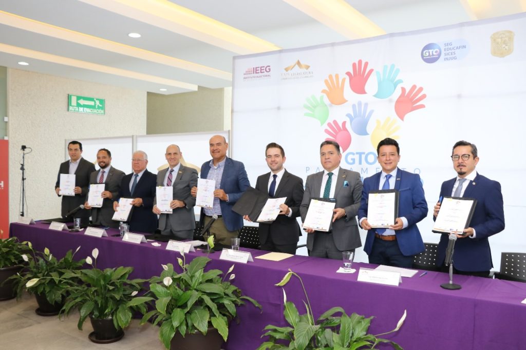 El convenio fue suscrito por representantes de las siguientes instituciones: la Secretaría de Educación; la Secretaría de Innovación, Ciencia y Educación Superior; el Instituto de Financiamiento e Información para la Educación; el Instituto Electoral del Estado de Guanajuato; el Instituto de la Juventud Guanajuatense; y la Universidad de Guanajuato.