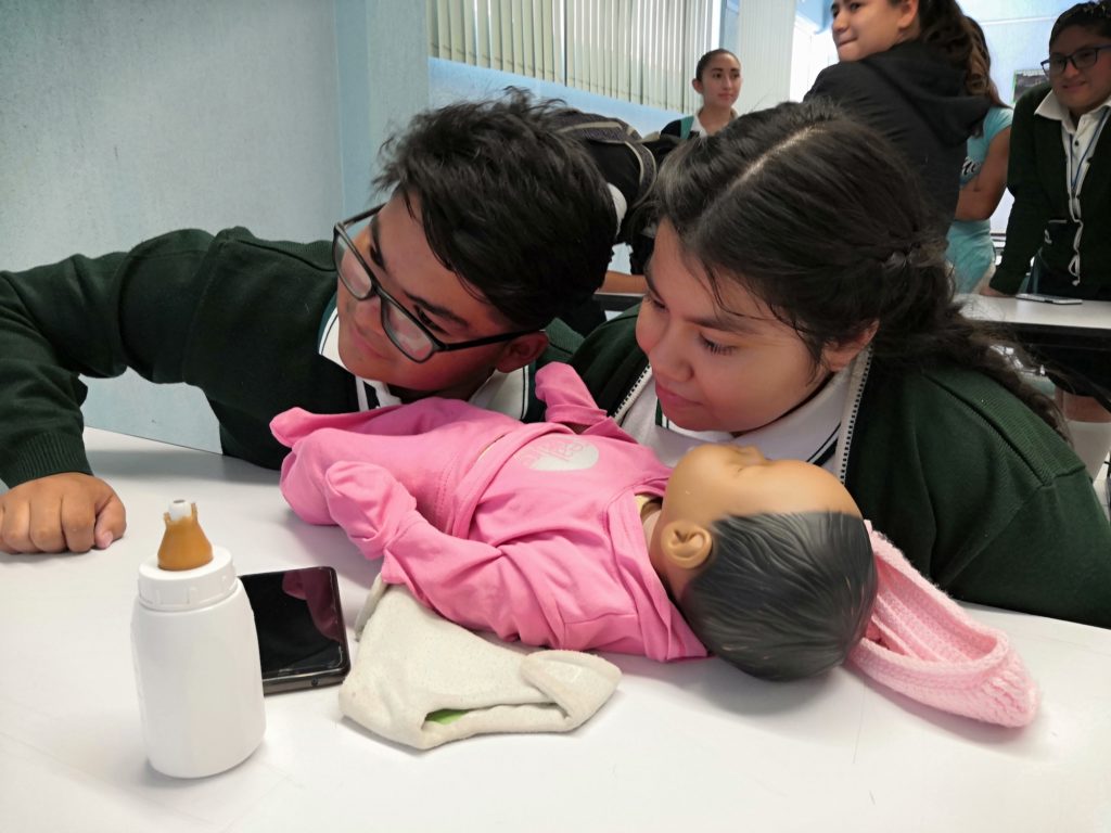 De igual forma algunos estudiantes con autorización de sus papás durante el fin de semana se llevaron a su casa un muñeco lúdico que imita el comportamiento de un bebé recién nacido con la finalidad de concientizarlos sobre las acciones y responsabilidades que implica tener un hijo.