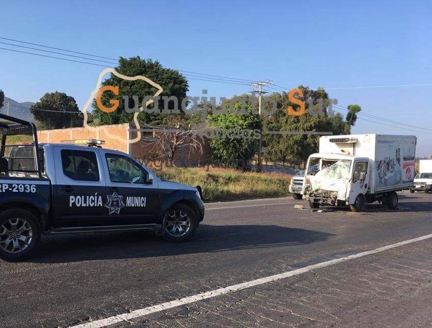 Un camión de carga ligera atropelló a una persona que se transportaba sobre un burro dejándolo con heridas graves y dos más con heridas leves tras un accidente sobre la carretera Salvatierra-Yuriria, a la altura de la comunidad de Santo Tomás Huatzindeo.