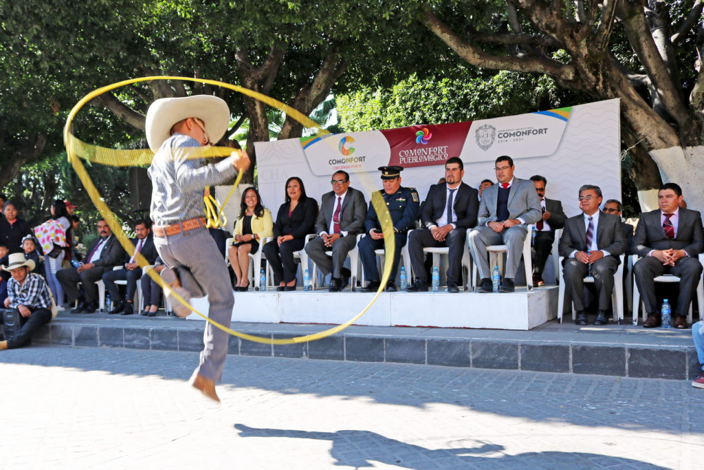 Los honores a la bandera en Comonfort, fueron coordinados por el Centro de Bachillerato Técnico Agropecuario de Neutla, estando presentes 22 escoltas y una banda de guerra, posterior a los honores se dio inicio al desfile conmemorativo.