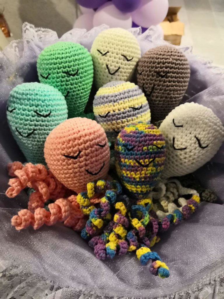 Estos pulpitos que fueron tejidos a mano por los alumnos servirán para que los niños prematuros que se encuentran en el área de Terapias Neonatas del Hospital, recuerden una de las tantas experiencias intrauterinas que todavía necesitan, generando un impacto directo a sus signos vitales como es la frecuencia cardíaca y respiratoria, la temperatura corporal y la saturación de oxígeno, todos indispensables para su desarrollo neurológico.
