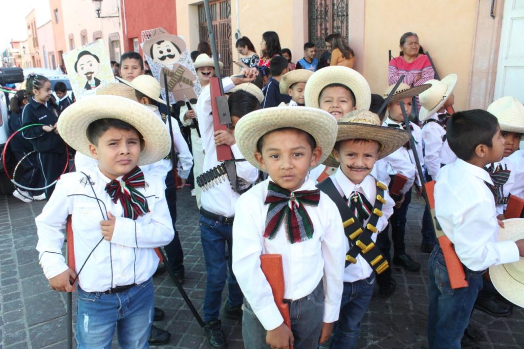 Así mismo participaron 3 jardines de niños, 9 primarias, 5 secundarias, 7 escuelas de nivel medio superior, 4 universidades y grupos de charros de la ciudad. Mismos que recorrieron las calles de Hidalgo, Heroico Colegio Militar, Guerrero y Benito Juárez hasta llegar a presidencia municipal.
