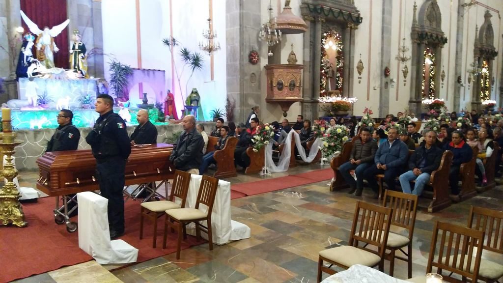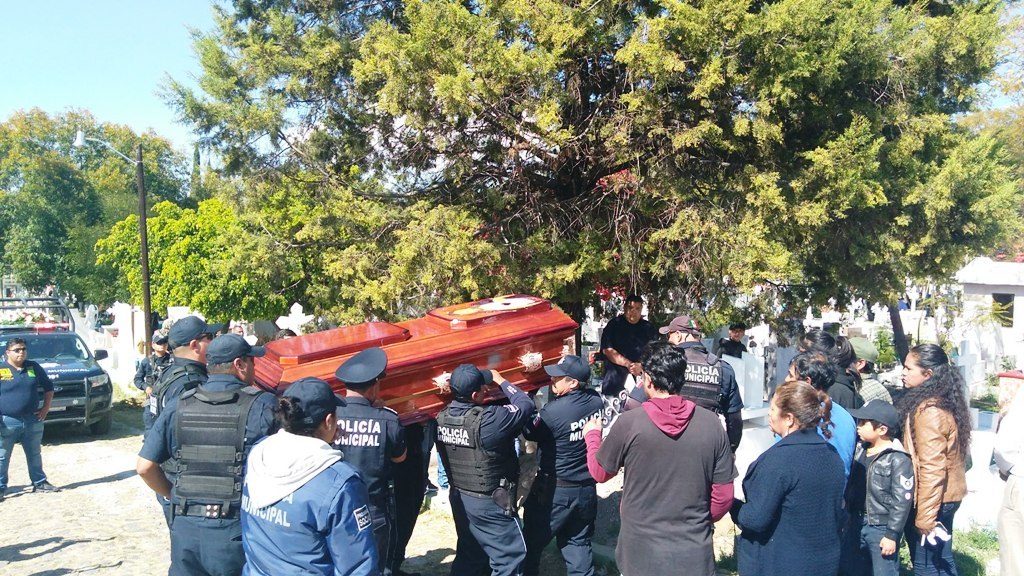 De igual manera, al término de la misa, siguiendo el mismo protocolo, su cuerpo fue llevado al cementerio municipal, para que elementos de seguridad le brindaran el último adiós y lo despidieran con los honores correspondientes.