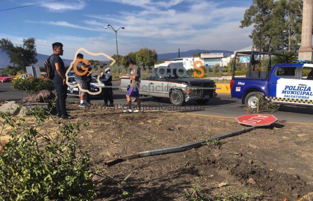 Tras un accidente automovilístico sobre la carretera Salvatierra-Acámbaro, justo sobre la Glorieta del Ángel dos personas resultaron lesionadas luego de que una camioneta impactó a un vehículo haciéndolo estrellarse contra un local de materiales.