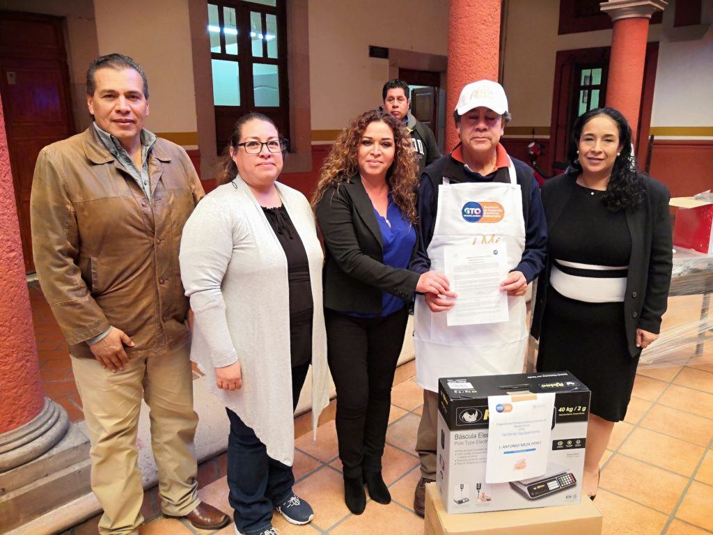 La mañana de este 13 de diciembre la titular de la dirección de Fomento al Empleo y la Inversión Yatziri Mendoza Jiménez, el regidor Hugo Lanuza García y Griselda Loana Velázquez Castillo de la Secretaría de Desarrollo Económico de Guanajuato entregaron equipamiento a 10 comerciantes de dicho mercado, con una inversión en conjunto de 81 mil 980 pesos. Dentro de los apoyos entregados se encuentran kit para carnicerías y kit para hacer alimentos calientes.