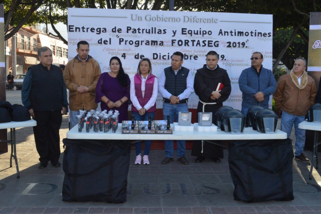 - Provenientes del FORTASEG entregan patrullas y equipo antimotines.