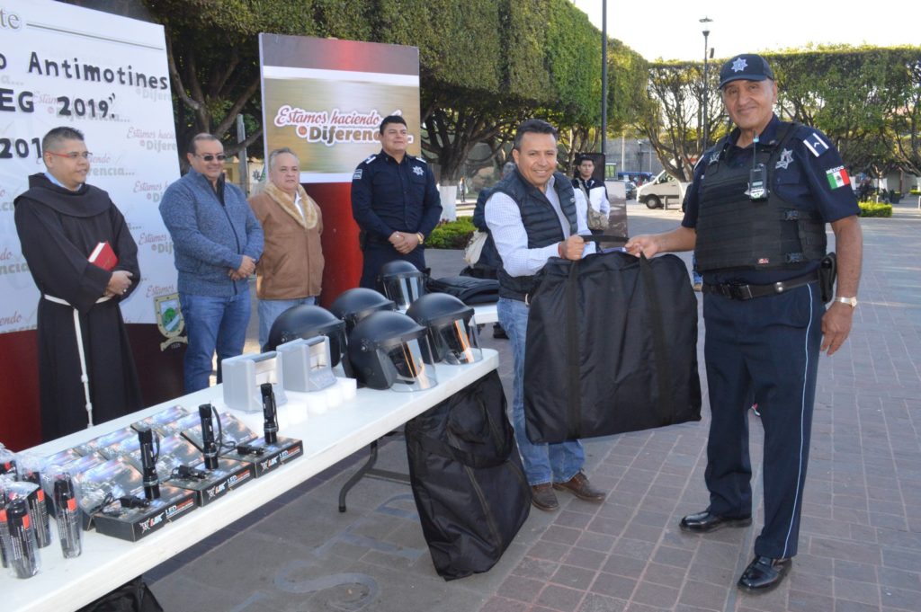 Como parte de la gestión que realiza el Lic. Alejandro Tirado Zúñiga ante las instancias estatales y federales, se entregaron 6 patrullas que cuentan con torretas, gancho de arrastre, estructura metálica, protecciones y equipo de radiocomunicación, además de 5 equipos antimotines, 10 cascos balísticos, 23 bastones policiales, fornituras, 40 gas lacrimógeno, 50 lámparas de mano, 4 terminales de radio móvil, 2 equipos biométricos y una planta de emergencia; cuya inversión asciende a los 4 millones 422 mil pesos.