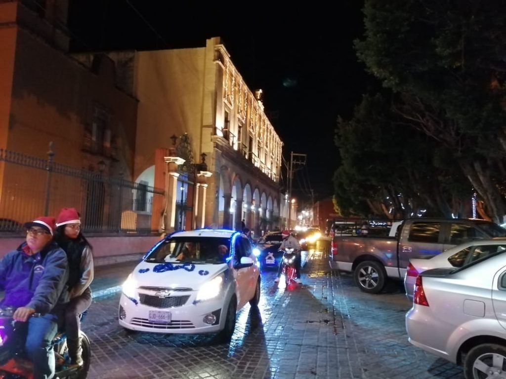 En punto de las 20:00 horas dio por iniciado el recorrido en la explanada del Carmen de donde partieron por la calle Hidalgo, posteriormente dieron vuelta por Heroico Colegio Militar para bajar por Guerrero, pasando por Juárez y finalizar nuevamente en el Carmen regalando pelotas y dulces a los niños que circulaban por las calles así como en el Carmen donde finalizaron la caravana y se mantuvieron por un tiempo para continuar regalando más pelotas y dulces a quienes se acercaban