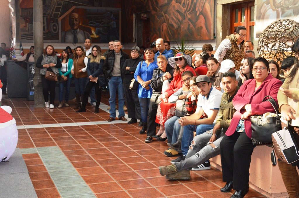 Alrededor de 300 trabajadores de las distintas áreas administrativas del gobierno municipal se reunieron en el patio principal de Presidencia Municipal, para estar presente en posada tradicional que habían organizado las autoridades municipales, al parecer por primera vez se convivía de esta manera entre autoridades y trabajadores municipales.