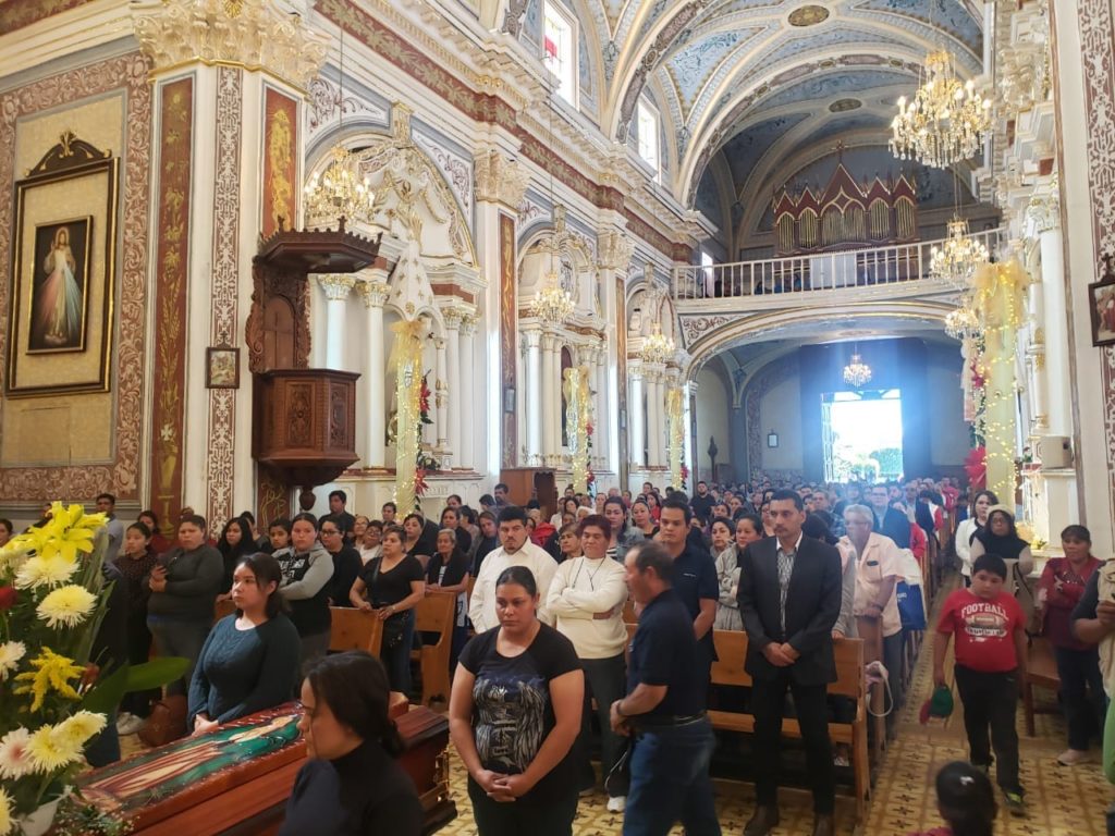 *La misa de cuerpo presente comenzó en punto de las 12:00 horas en el templo de San Miguel Arcángel.