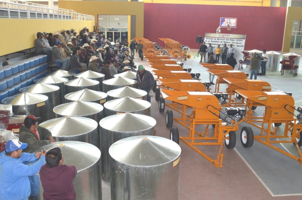 El Gobierno Municipal a través de la Dirección de Desarrollo Rural llevó a cabo la entrega de implementos a 77 productores locales consistentes en silos, molinos forrajeros, desgranadoras y rastrillos agrícolas.