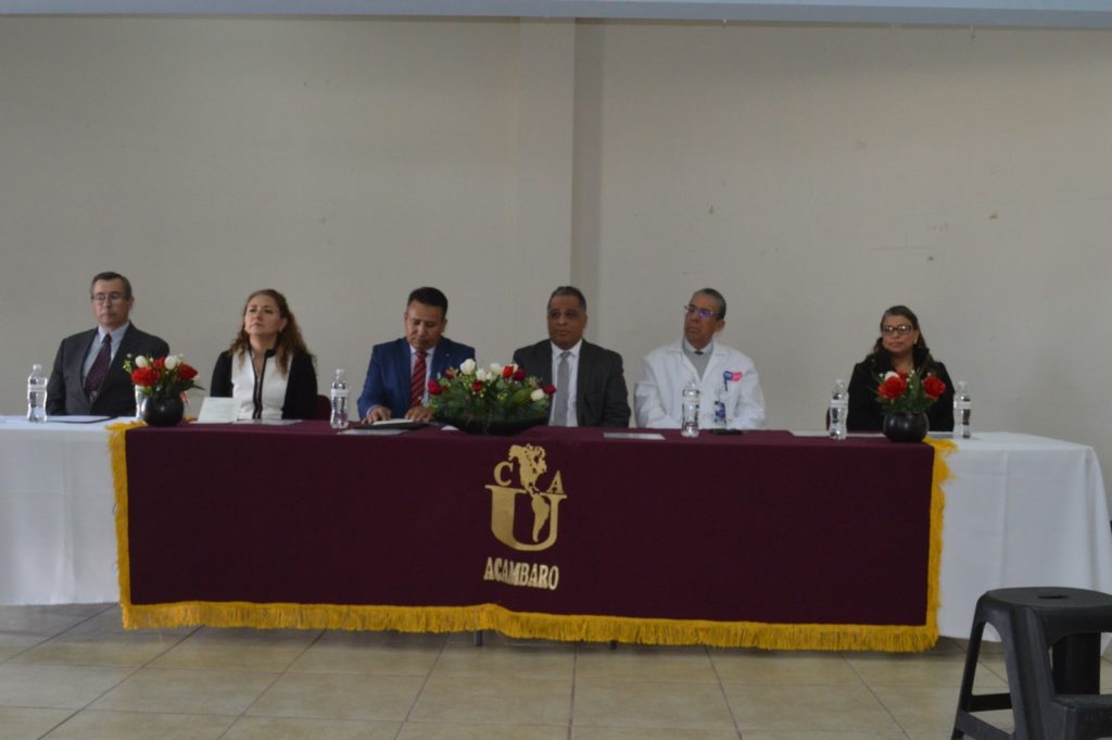 El evento tuvo lugar en el Auditorio del nivel Secundaria de la UCA, en donde estuvieron presentes el Arq. Oscar Danny Durán González, Gerente Educativo del Plantel UCA Acámbaro; el Dr. Rafael Maldonado, Jefe de Enseñanza del Hospital General de Acámbaro; José Antonio Rosales Urbiola, Coordinador del Área de Psicología; y en representación de la Delegación Regional de Educación, asistió la Lic. Anayatzín Ferreira Fuentes.
