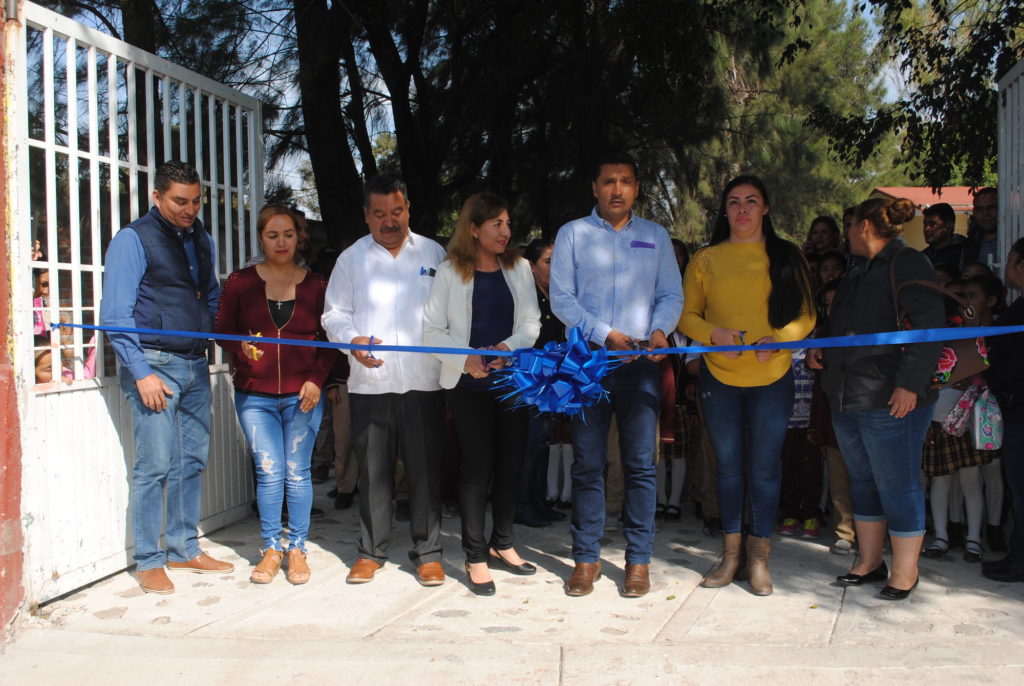 El alcalde, Lic. Enrique Arreola Mandujano en compañía de la directora de obras públicas, Arq. Ana María Sánchez Hurtado, visitaron la escuela primaria Miguel Hidalgo y Costilla en la comunidad de Cerro Prieto, donde inauguraron la obra de pavimentación con piedra ahogada y roderas de concreto del acceso y patio de usos múltiples de la misma institución.
