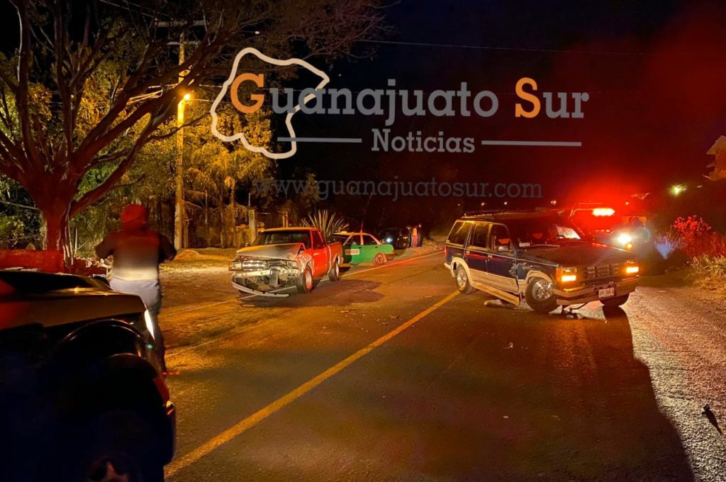El reporte se generó alrededor de las 21:30 horas ante el sistema de emergencias 911, donde se reportó un accidente vehicular sobre la carretera Salvatierra-Acámbaro a la altura de “Bodegas Guido”, cerca de la entrada a la colonia Molino de Ávila, donde una camioneta Pick Up color blanco, sufrió daños en el cofre, mientras que una camioneta Explorer de la marca Ford color verde, resultó dañada en su lateral luego de que chocaron de frente.