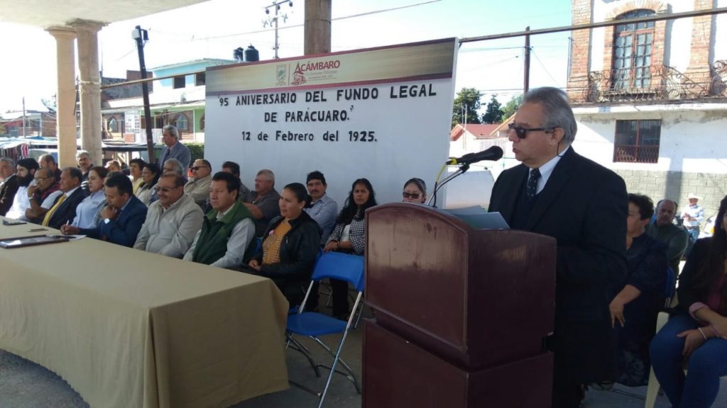 Señaló que es muy grato que la sociedad civil de Parácuaro, de manera organizada, celebre su fundación legal “es un momento oportuno para hacerlo, sobre todo porque el evento es uno de los cinco que se realizan en comunidades del municipio de Acámbaro, como parte de un programa de descentralización de las actividades cívicas y culturales”.