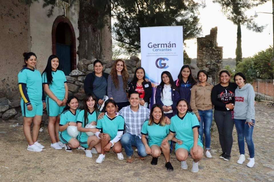 Con la finalidad de alejar a los niños y jóvenes de los vicios y aprendan a convivir de una manera sana el diputado local por el distrito XX German Cervantes Vega entrego valones y redes a jovenes de la comunidad de la Estancia del Carmen de Maravatio.