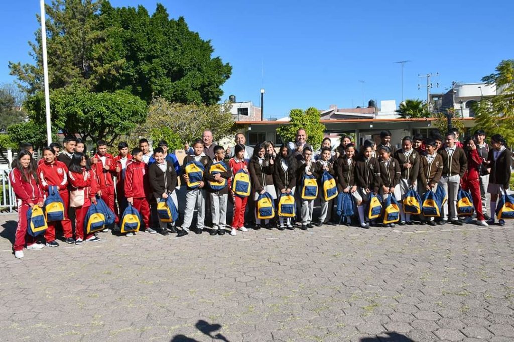 Acompañado del Profr. Leonardo Flores Miranda, Delegado Regional de la SEG Delegación Salamanca; el Lic. Jorge Ortiz Ortega, Presidente Municipal y su distinguida esposa Lic. Jessica González González, además de autoridades escolares, encabezaron la ceremonia de entrega de mochilas y equipos de cómputo para la Escuela Secundaria Técnica No. 26.