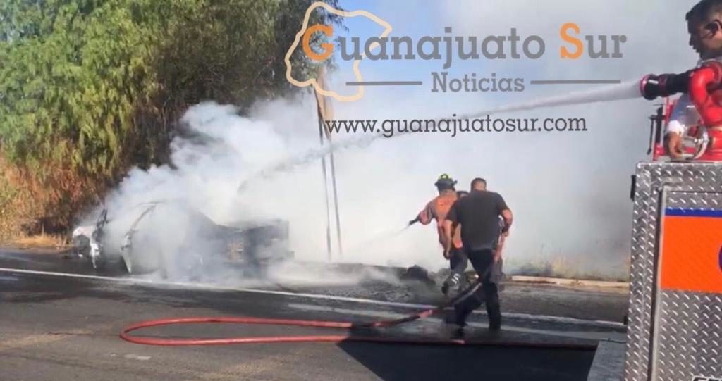 Un automóvil marca stratus se incendio sobre la carretera Salvatierra-Celaya a la altura del entronque que comunica con el municipio de Tarimoro, se sabe que el incendio fue debido una falla mecánica, no se registraron perdidas humanas ante el incidente