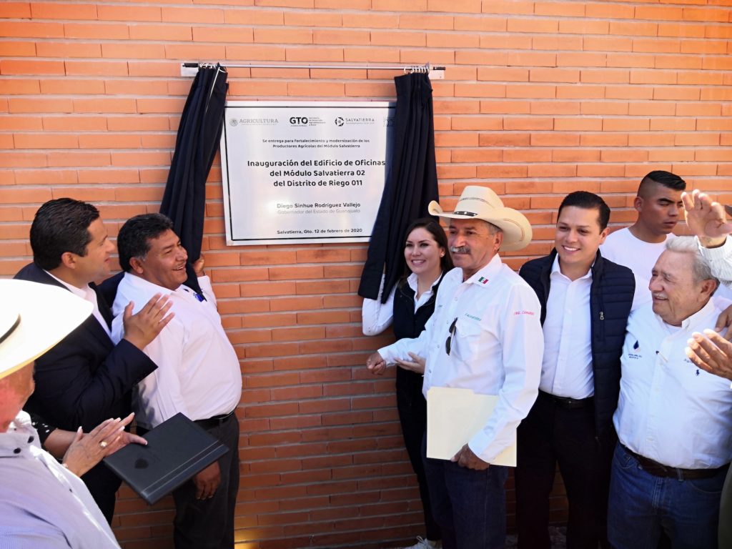 Con una inversión de la Federación de más de 15.7 millones de pesos, el Gobernador inauguró las oficinas del Módulo de Riego Salvatierra donde se dará empleo directo a 50 personas y más de 6 mil usuarios serán beneficiados; en estas oficinas se dará atención a productores en la administración y operación del agua de riego.