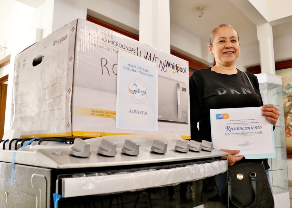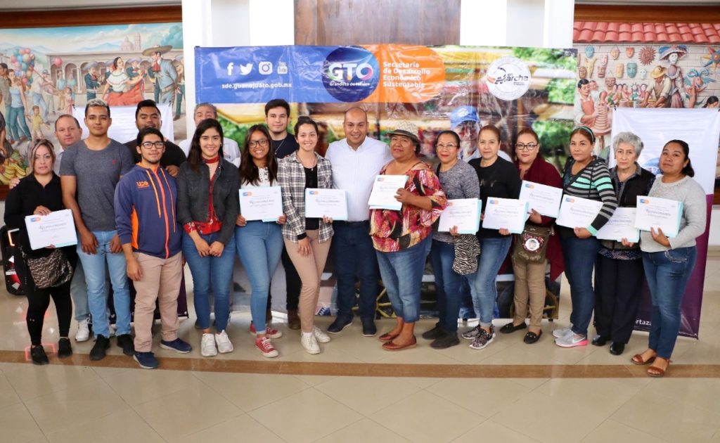 En total se entregaron 10 apoyos con inversión del Estado de 100 mil pesos para uniones de comerciantes y dos proyectos encabezados por jóvenes de la Universidad Politécnica de Guanajuato.