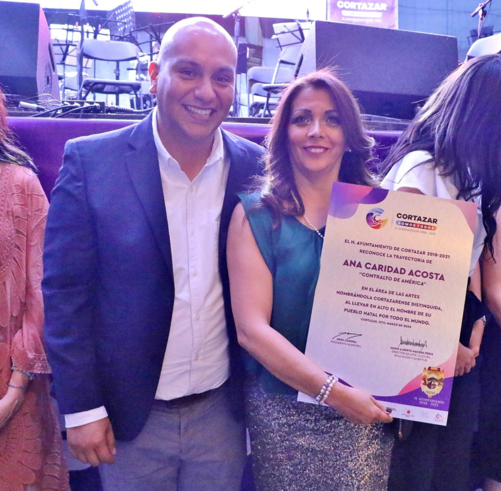 En el mismo evento Esperanza Rosas recibió a nombre la cantante de ópera, originaria de Cortazar, Ana Caridad Acosta “contraalto de américa”, quien por motivos de salud no pudo estar presente, un reconocimiento por su trayectoria artística y poner en alto el nombre del municipio.