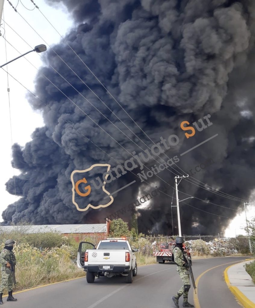 Al rededor de las 12 del día se reportó al sistema de emergencias un incendio en una recicladora ubicada en la comunidad de Santa Maria del Refugio cerca de la carretera Celaya – Salvatierra.