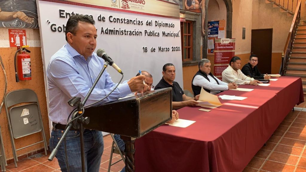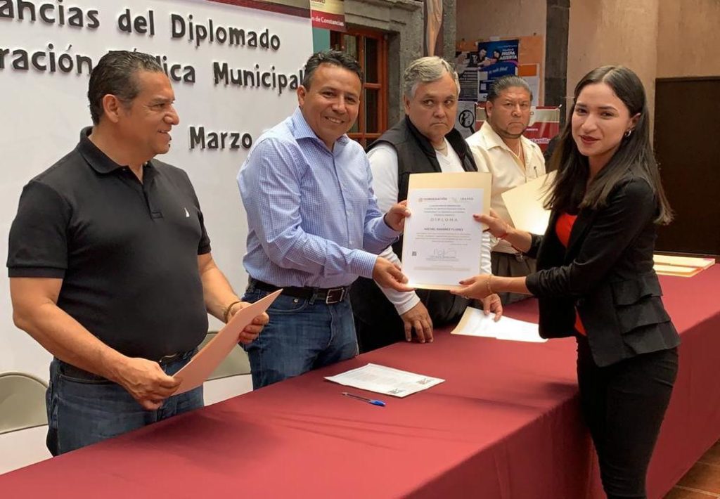 Con la presencia del alcalde, Lic. Alejandro Tirado Zúñiga, se llevó a cabo la entrega a servidores públicos de la administración municipal las constancias de terminación del Diplomado “Gobierno y Administración Pública Municipal” en las instalaciones de presidencia.