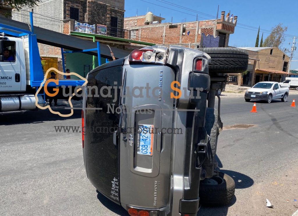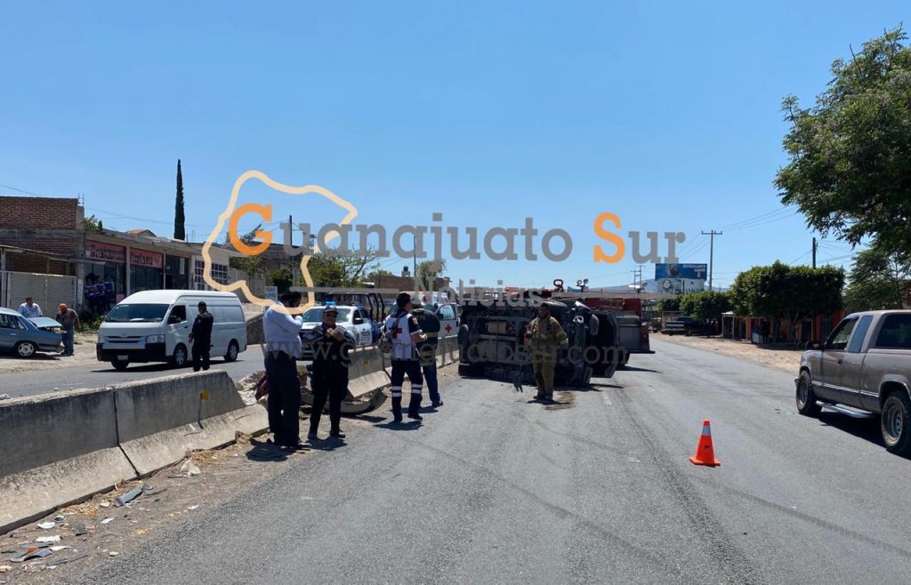 Se registró un accidente tipo volcadura en la carretera Salvatierra Celaya a la altura de la colonia Santa Anita, ante el incidente únicamente se registraron daños materiales, el tripulante del vehículo salió ileso.