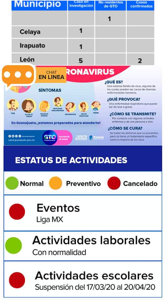 “Se trabajara de manera coordinada con la Secretaría de Salud de Guanajuato, para evitar al máximo el contagio, por lo que les pedimos sigan las recomendaciones que está haciendo el sector salud en la página www.coronavirus.guanajuato.gob.mx