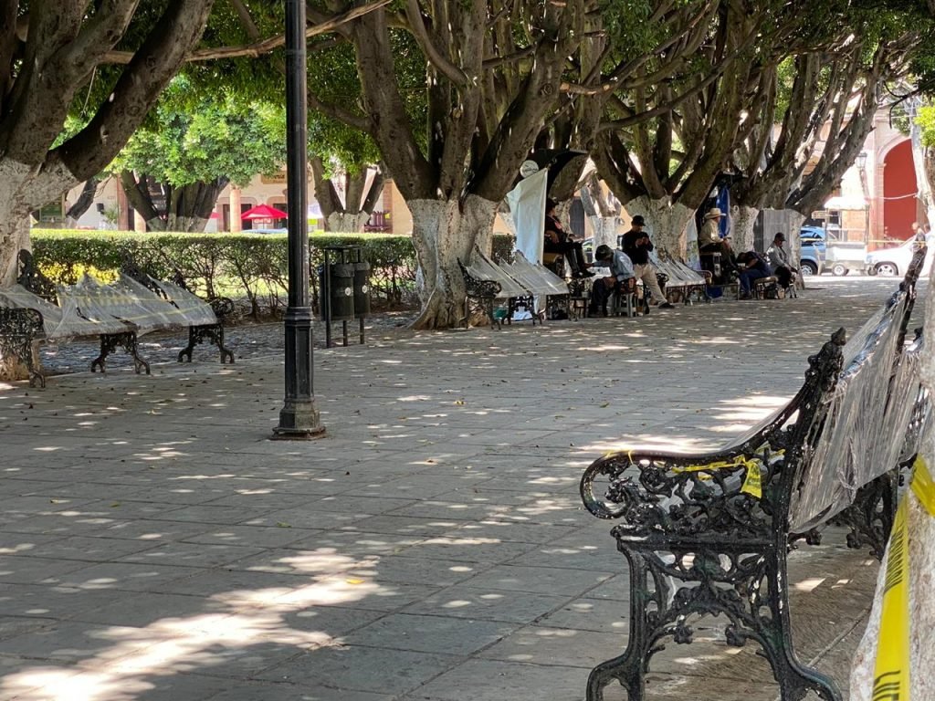 Fueron colocadas cintas alrededor de las bancas para evitar que la gente se quede mas tiempo de lo debido en las calles así como en las zonas mas visitadas que son el jardín principal y al explanada del Carmen y a subes pasen el mayor tiempo posible en sus casas, dichas restricciones son como prevención ante el coronavirus.