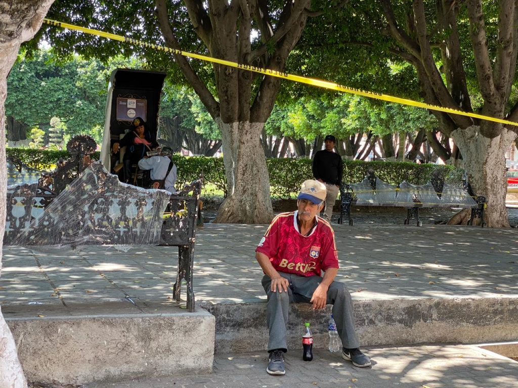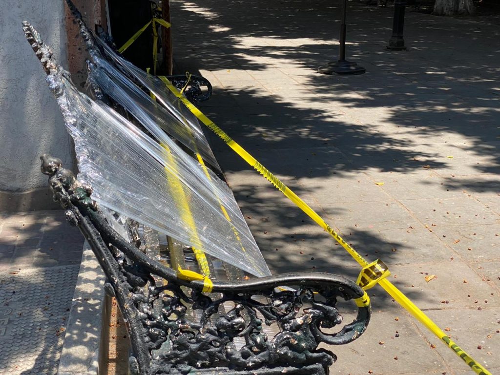 Fueron colocadas cintas alrededor de las bancas para evitar que la gente se quede mas tiempo de lo debido en las calles así como en las zonas mas visitadas que son el jardín principal y al explanada del Carmen y a subes pasen el mayor tiempo posible en sus casas, dichas restricciones son como prevención ante el coronavirus.