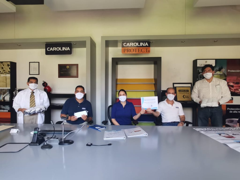 La mañana de este viernes 24 de abril La Presidente municipal Karla Alejandrina Lanuza Hernández recibió por parte de la empresa Carolina el primer suministro de 5 mil cubre bocas lavables elaborados en dicha industria.
